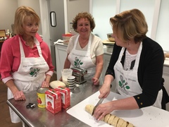 Menu: Homemade Ravioli Della Nonna filled with Ricotta & Spinach with Pomodoro Sauce; Grilled Herb-Crusted Pork Tenderloin Medallions with Chimichurry Sauce; Rosemary Fingerling Potatoes; Grilled Vegetable Salad in Orange Balsamic Vinaigrette; Peach Almond Upside-Down Cake with Ice Cream.