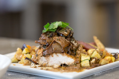 Menu: Chicken Bites Cacciatora with Peppers & Balsamic on Pappardelle Pasta; Lemon Chicken Soup; Chicken Scaloppine Marsala with Wild Mushroom Sauce; Roasted Lemon Chicken with Fingerling Potatoes & Olives; Classic Chocolate Espresso Tiramisu