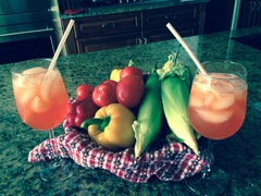 Menu: Quick-Cured Trout Pate; Southern-Style “Beer Can” Chicken with Spicy Peach BBQ Glaze; Brown Sugar & Spice Rubbed Back Ribs with Vinegar Mop & Roasted Corn; Red Wine & Garlic Marinated Tri-Tip Steak with Horseradish Cream, Summer Greens & Sliced Tomatoes; Lemon Shortcake with Macerated Strawberries